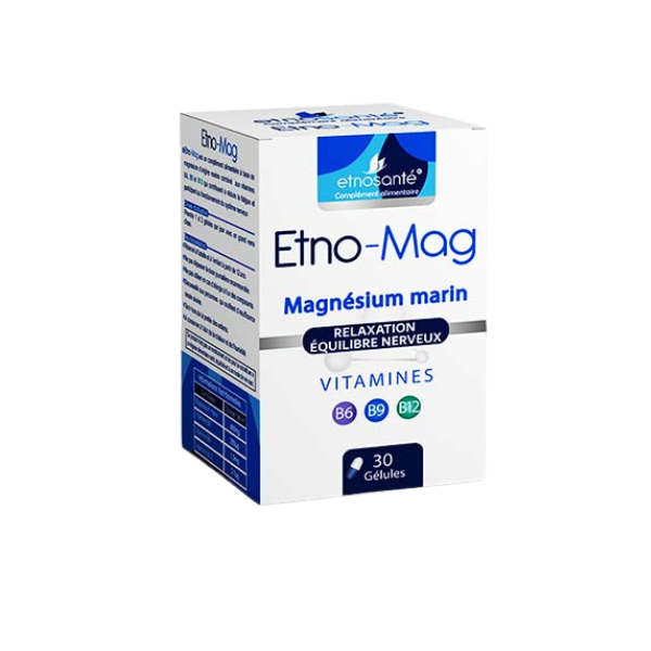 Etno-Mag est un complément alimentaire à base de magnésium d’origine marine combiné aux vitamines B6, B9 et B12 qui contribuent à réduire la fatigue et participent au fonctionnement du système nerveux.