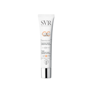 Mousse très haute protection 50+ teintée qui protège des UVA, des UVB et de la lumière bleue et qui corrige et estompe les taches sur les peaux sensibles hyperpigmentées de tout âge. Contient des filtres non perturbateurs endocriniens potentiels, non solubles dans l’eau et non nanométriques.