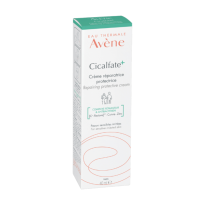 Cicalfate+ Crème Réparatrice Protectrice (40ml) : Cette crème est formulée pour apaiser, protéger et favoriser la réparation des peaux irritées. Elle forme un film protecteur sur les zones abîmées, créant un effet « pansement » qui protège l’épiderme. Grâce à l’Eau thermale d’Avène, au complexe réparateur [C⁺-Restore]™, et aux ingrédients purifiants comme le sulfate de cuivre et le sulfate de zinc, cette crème est idéale pour toute la famille et peut être utilisée sur les zones intimes externes.