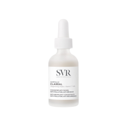 SVR Clairial Ampoule Anti-Tache, corrige et réduit visiblement les taches brunes existantes dès 2 semaines(1) tout en prévenant et limitant leur réapparition grâce à sa triple action : anti-taches, anti-pollution et anti-récidive. Elle unifie et illumine le teint de toutes les peaux claires à foncées.