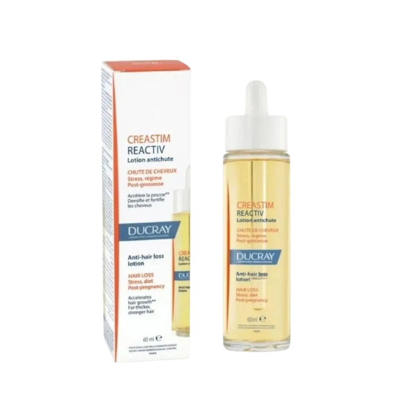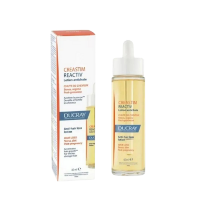 DUCRAY CREASTIM REACTIV est un soin capillaire qui stimule la pousse* et freine la chute. Indiqué en cas de chute de cheveux réactionnelle + Un shampooing  traitant qui contribue à ralentir la chute des cheveux offert